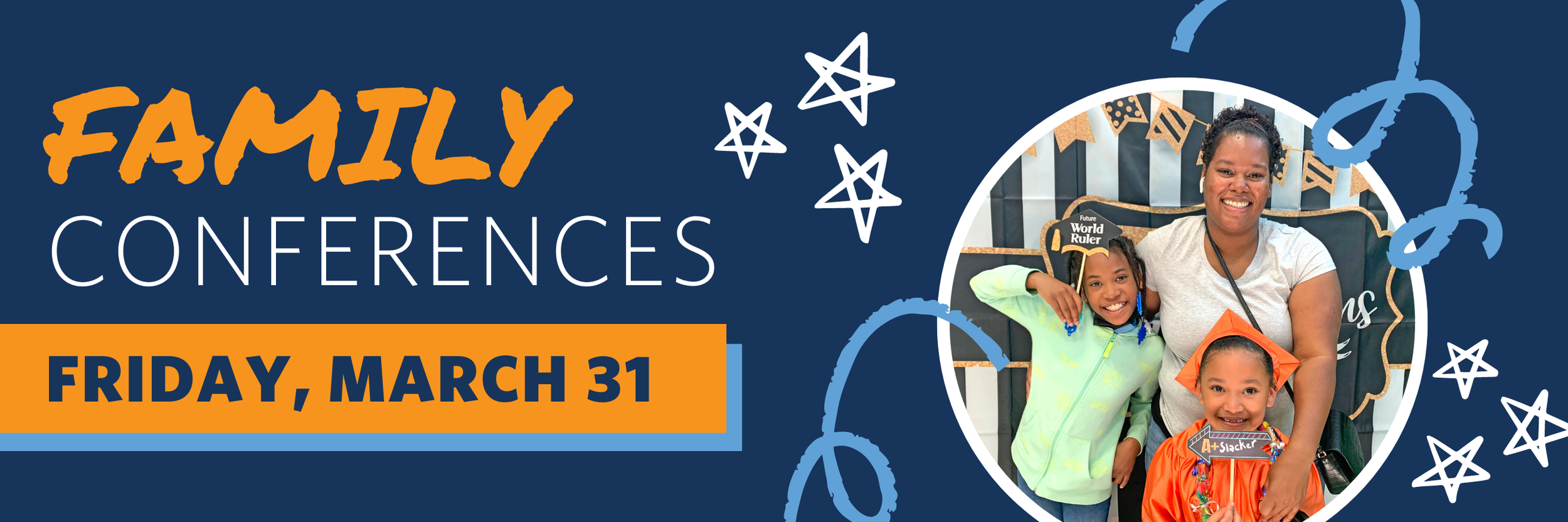 Family Conferences will be held Friday, March 31. There will be no classes during Family Conferences. If you need to schedule a meeting with your child’s teacher, please email the teacher directly to set up a time slot. Conferences will be held in-person or virtually.
