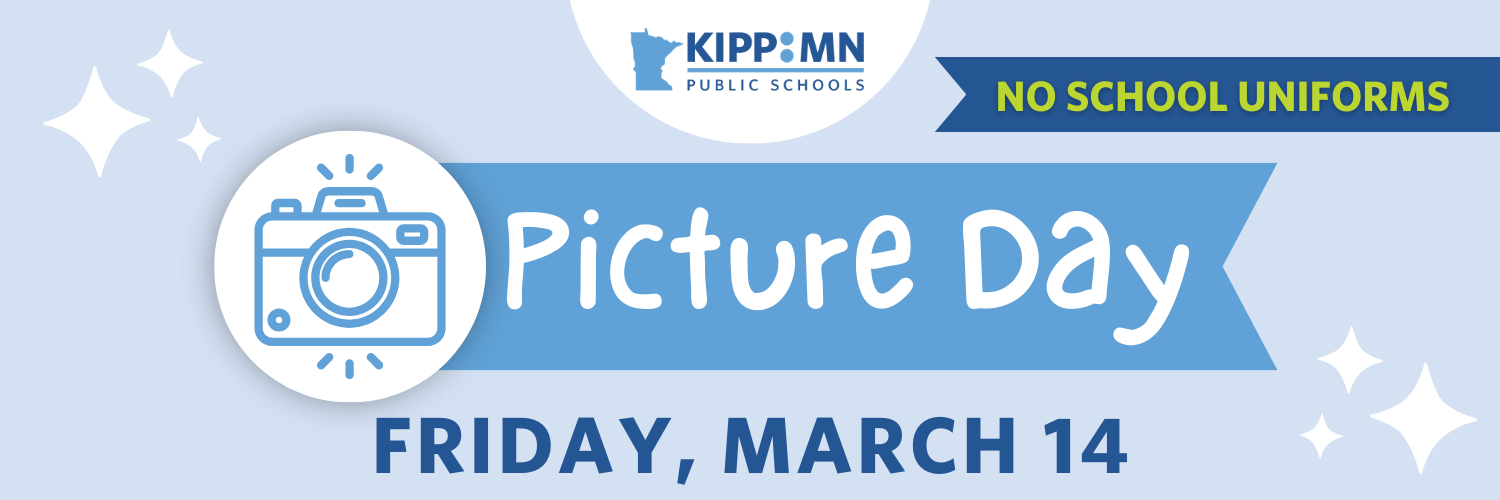 Our KIPP MN Spring School Picture Day is coming up on Friday, March 14. Families should have received Lifetouch packets to order school pictures. If you did not receive a packet, you can either stop by our front office to pick one up, or call our front office at 612-287-9700.