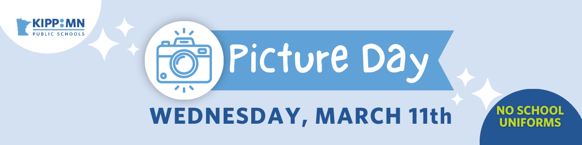 Our KIPP Minnesota Spring Picture Day is on Wednesday, March 11th with Strawbridge Studios. Students will be taking their Spring School Pictures in normal attire (no school uniforms).
